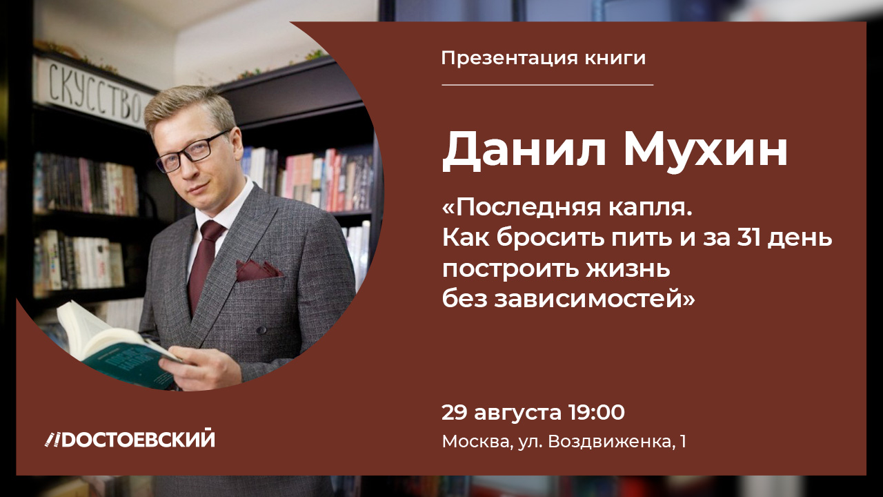 Мероприятие состоится 29 августа в 19:00 в книжном Dостоевский по адресу: