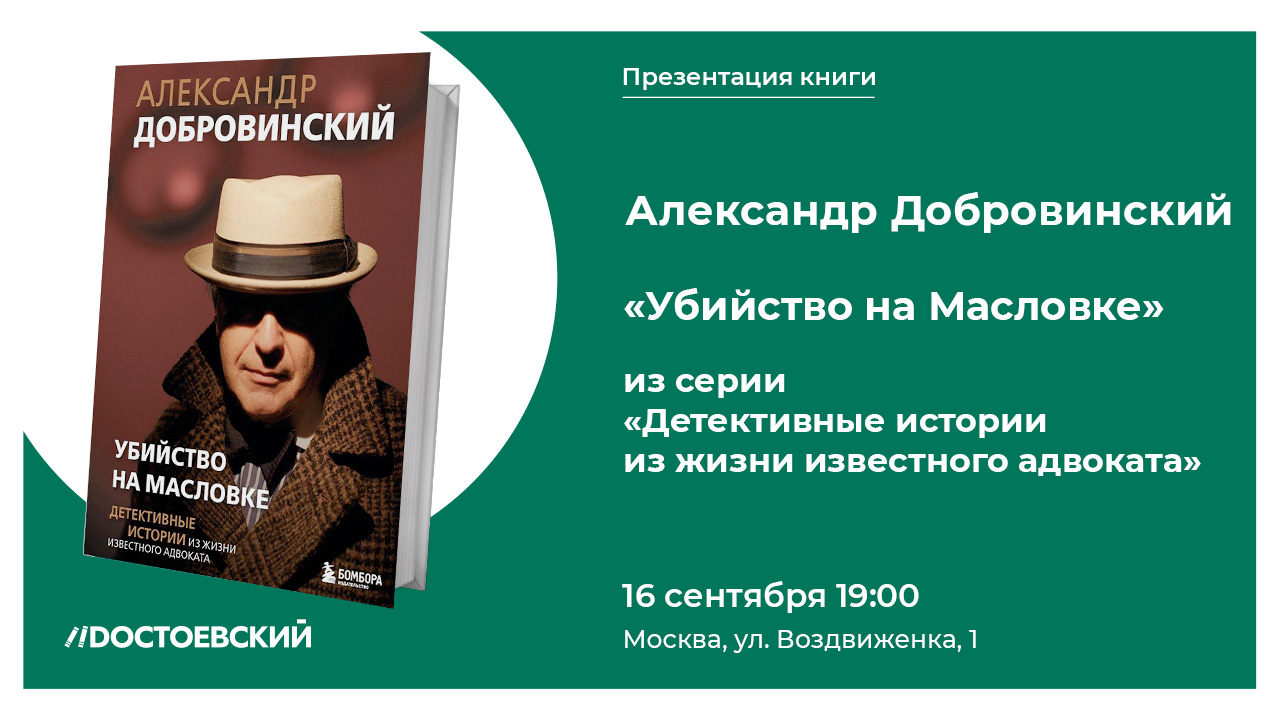 Встреча состоится 16 сентября в 19:00 в книжном Dостоевский по адресу: