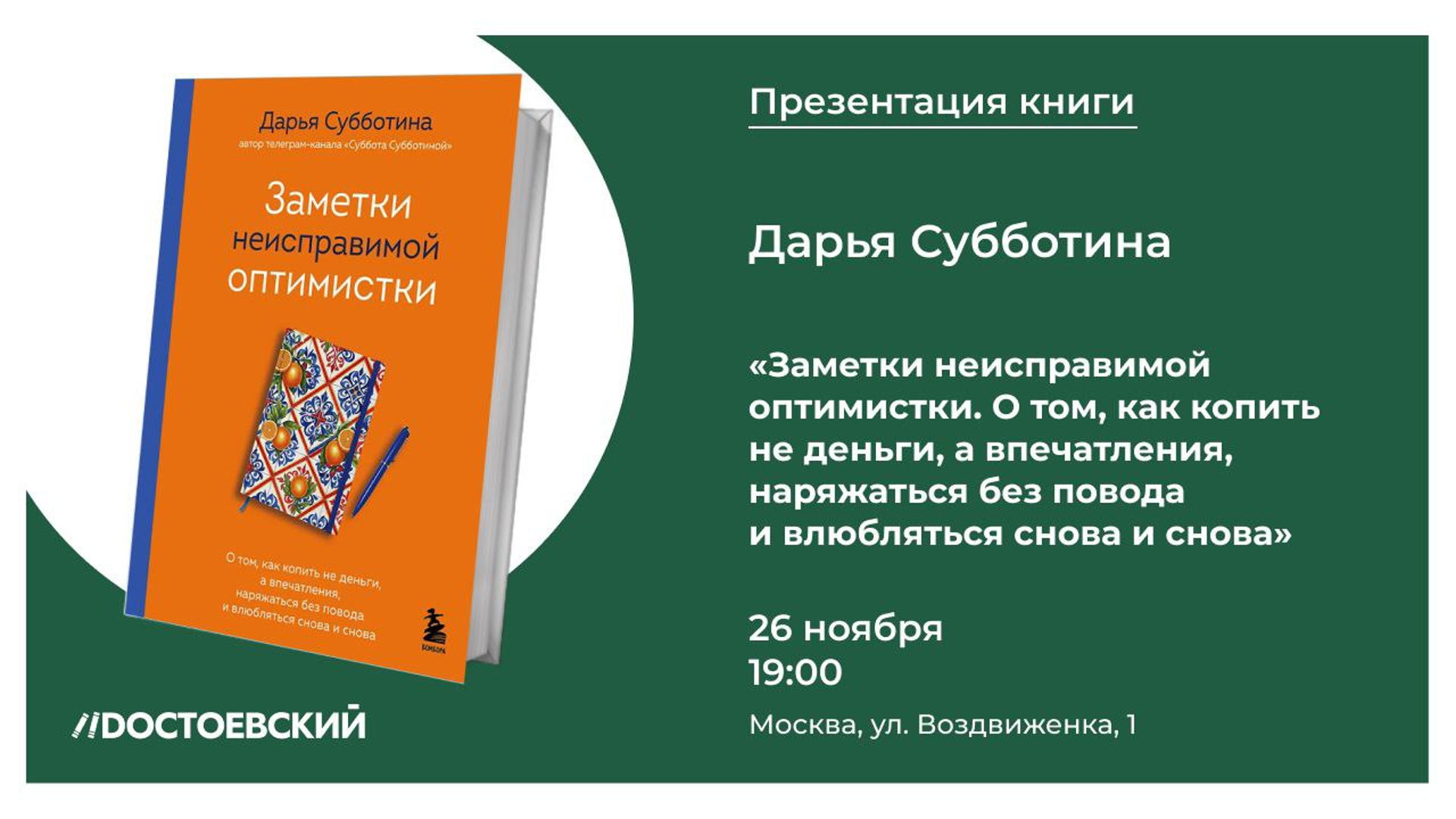 Встреча состоится 26 ноября в 19:00 в книжном Dостоевский по адресу: